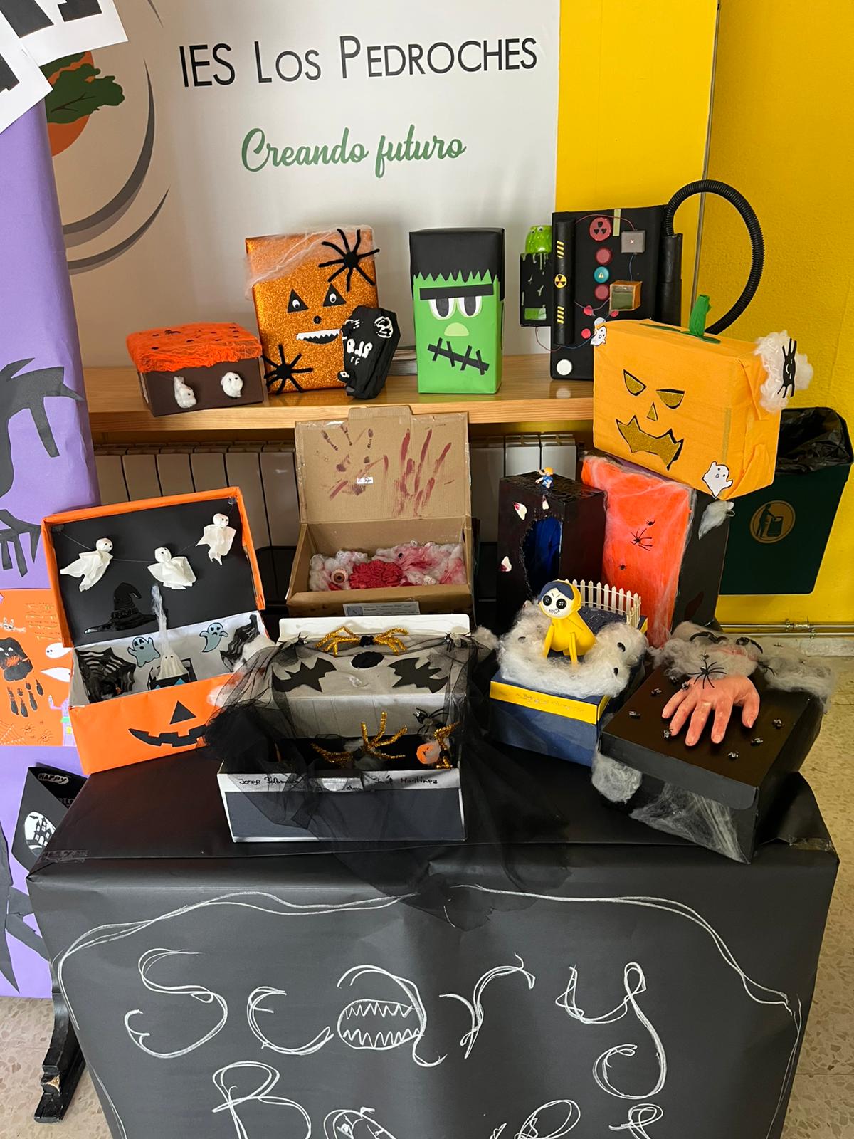 Durante la semana del 27 al 31 de octubre, el equipo de bilingüismo y el departamento de inglés del IES Los Pedroches han organizado actividades interdisciplinares para conocer mejor esta tradición anglosajona y dar rienda suelta a nuestra creatividad: Tarjetas 3D de Halloween, Halloween rhymes, videos cortos y por, primera vez, un concurso de cajas terroríficas creadas en la ANL de tecnología. El éxito ha sido tan grande que este concurso ha llegado para quedarse.